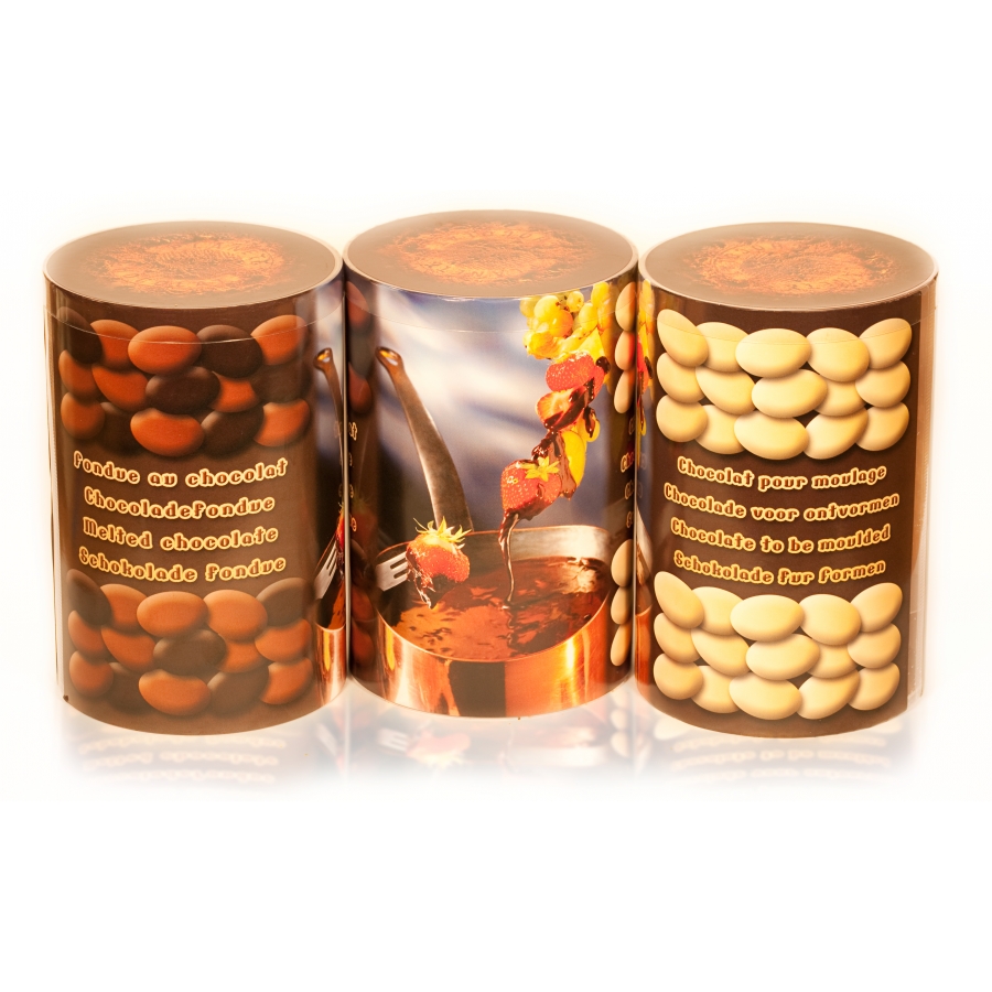 Die Verpackung erinnert an die Form von Schokopastillen und liegt angenehm in der Hand. Das Gehalt an Kakaobutter biete viele Ideen für kreative Rezepte wie Caraques, Schokoladentafeln, Süßigkeiten, Knusperwaren oder Desserts (Mousse au Chocolat, Schwarzwälder Kirschtorte , Schokoladen-Fondue, Obst Toppings, etc.) . Außerdem können Verzierungen für alle kulinarischen Gerichte hinzugefügt werden.