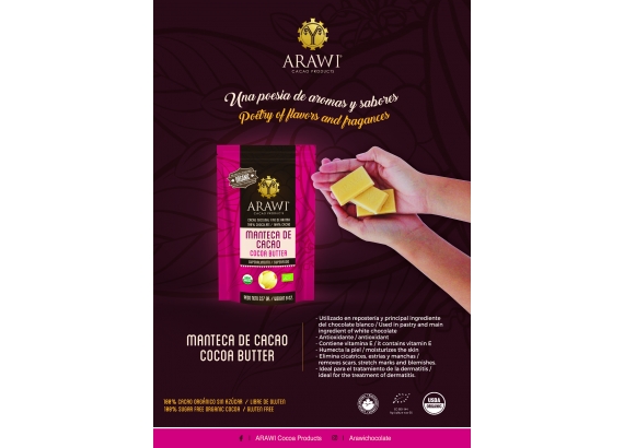 In Flockenform vorliegend, ist die rohe Kakaobutter 100% leicht dosierbar, je nach dem gewünschten Anwendungsbereich. In der Küche verschmilzt sie sowohl mit salzigen als auch Süßspeisen. Bei der Zubereitung von salzigen Speisen, kann sie Fette ersetzen und den Gerichten eine feine Kakaonote geben.