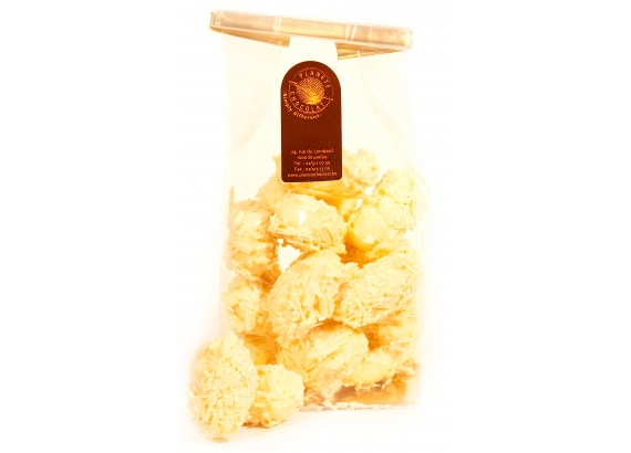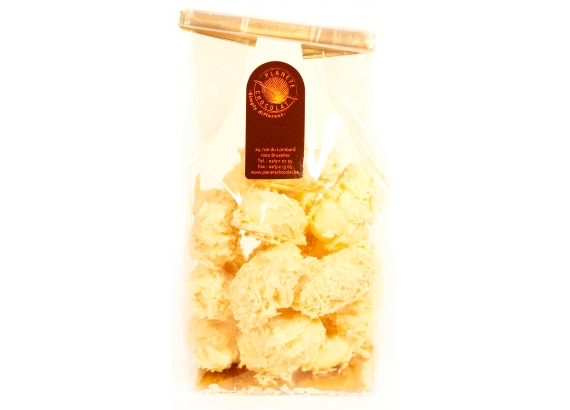 Meltingly soft marc de champagne truffles, coated with white chocolate flakes. Selected with the greatest care, these truffles will be the talk of the party at your receptions, holiday dinners, desserts and they will seduce the most demanding palates. You could also share these sweets with your sweetie during a romantic candle-lit meal!