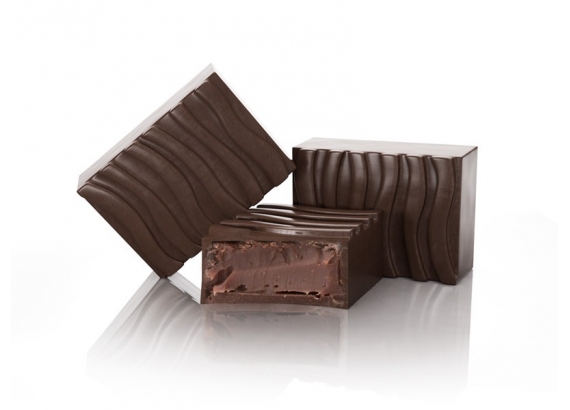 Ingredientes: Pasta de cacao, manteca de cacao, glucosa, nata fresca, praliné (manteca, pasta de avellanas), Pineau des Charentes, azúcar, emulsionante: lecitina de soja (sin OGM), esencia: vainilla natural.
