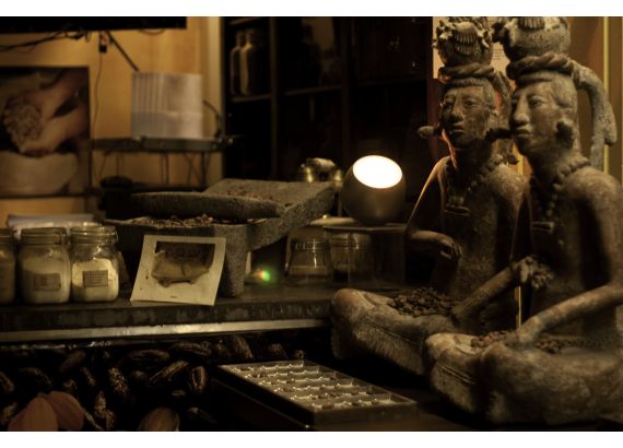 Outre l’atelier de fabrication, Planète Chocolat abrite deux salles de démonstration. La décoration a pour but de plonger le visiteur dans le fabuleux univers du cacao et du chocolat.