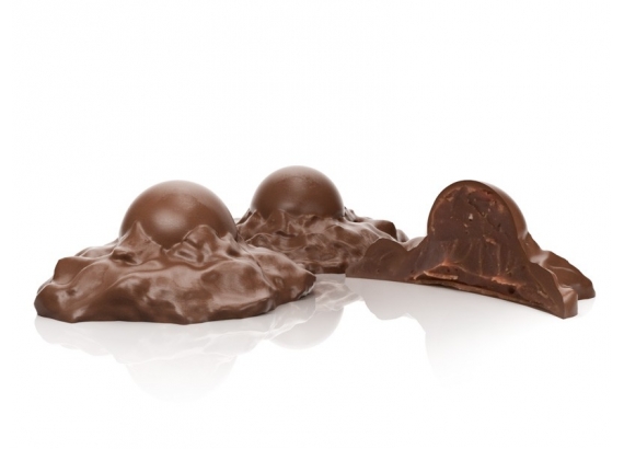 De melkchocolade brengt de smaken door zijn milde en tegelijkertijd ook delicate aroma geassocieerd met hazelnoot in een heerlijke ganache.