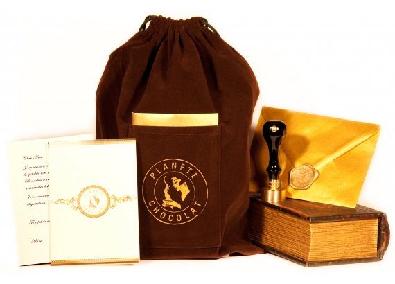 Maak jouw cadeau met een persoonlijke boodschap aan de ontvanger. Een envelop met de bericht wordt ingevoegd in het voorvak van een luxe chocolade bruine tas van fluweel.