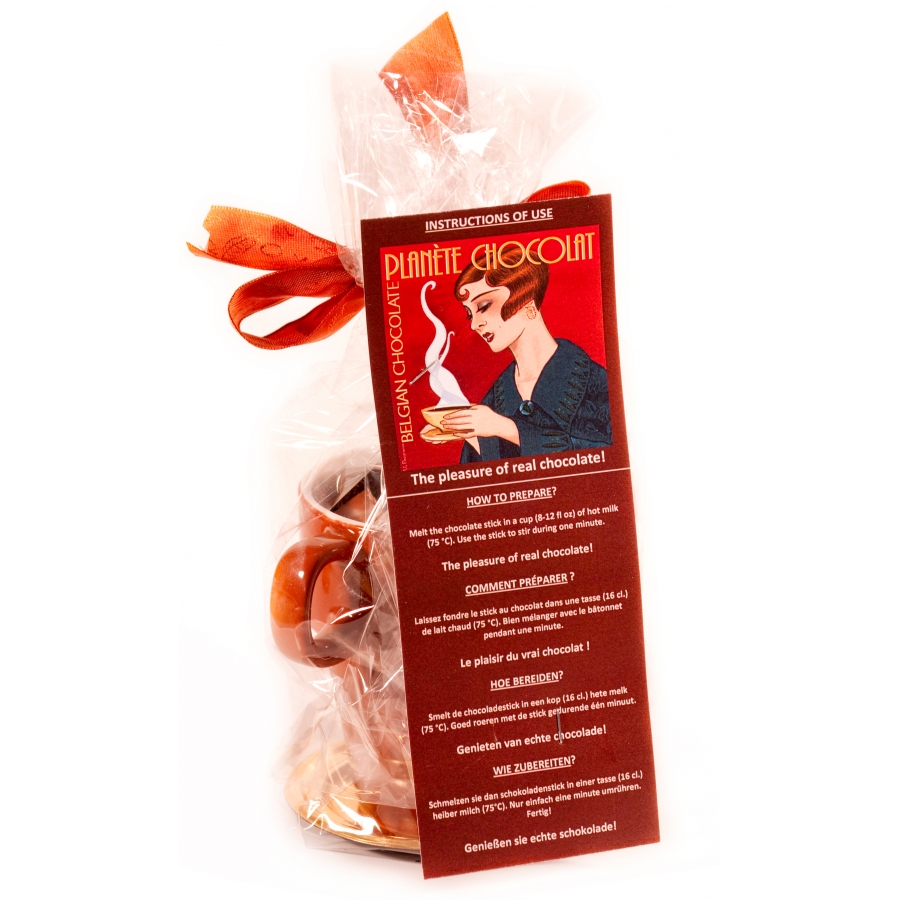 La quantité de ganache de chocolat faite maison est justement dosée pour agrémenter une tasse de lait. Le stick de ganache est accompagné de pralines qui rendront votre pause douceur encore plus savoureuse.